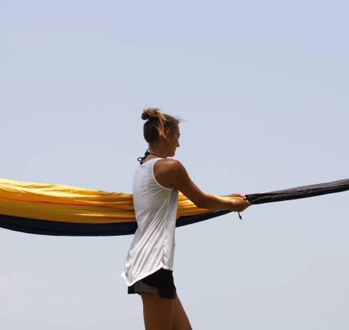 Csak ejtőernyőselyem függőágyakkal kompatibilis, a klasszikus pamut függőágy nem fér bele (sajnos).