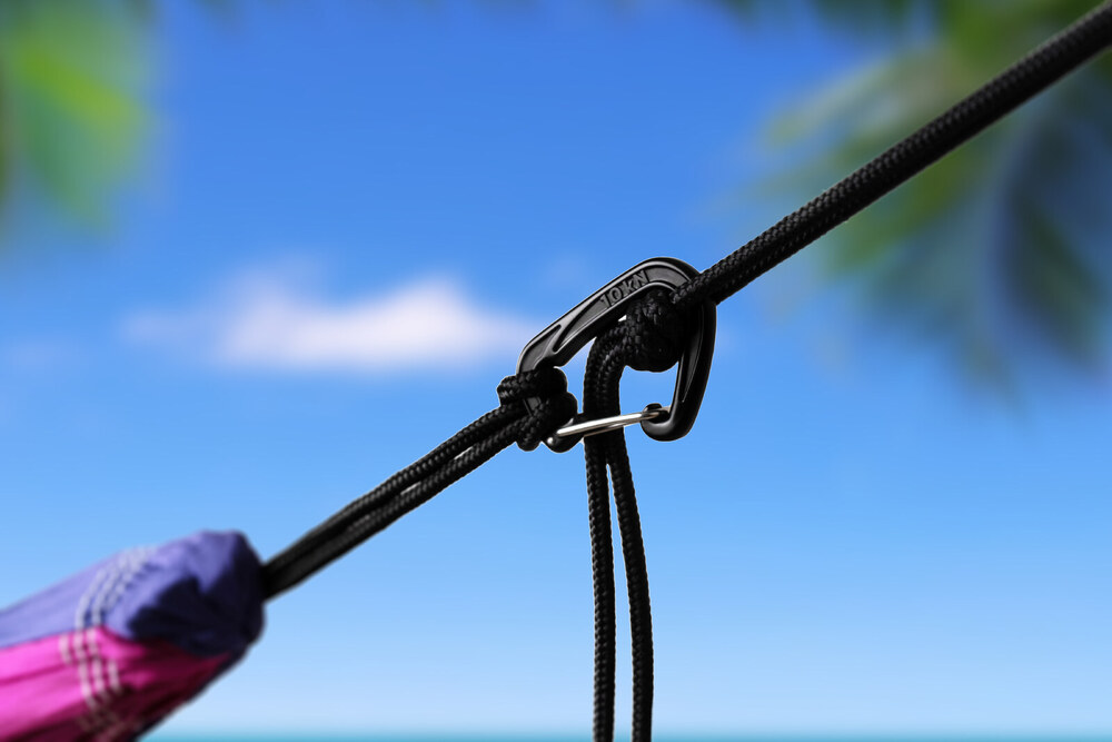 A Ticket To The Moon függőágyak végén egy roppant erős S kampó található alapestben, amivel könnyedén felakasztható a hozzá tartozó kötélre. Vannak, akik mégis jobban szeretik a karabinerrel szerelést, nekik gyárt a Ticket To The Moon pille könnyű de nagy teherbírású karabinereket. Úgy tervezték, hogy a kötelek elhelyezkedése optimális legyen, és a karabiner soha ne tegyen kárt sem a kötélben, sem a függőágy anyagában.