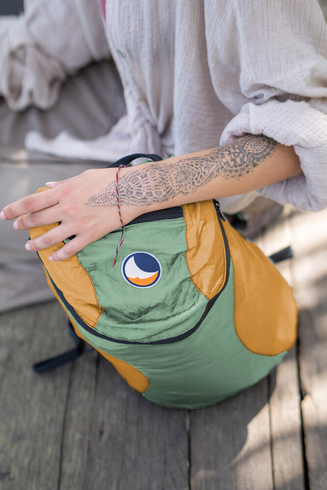 A Ticket To The Moon függőágyak gyártása során keletkezett maradék anyagból készült mini hátizsák.