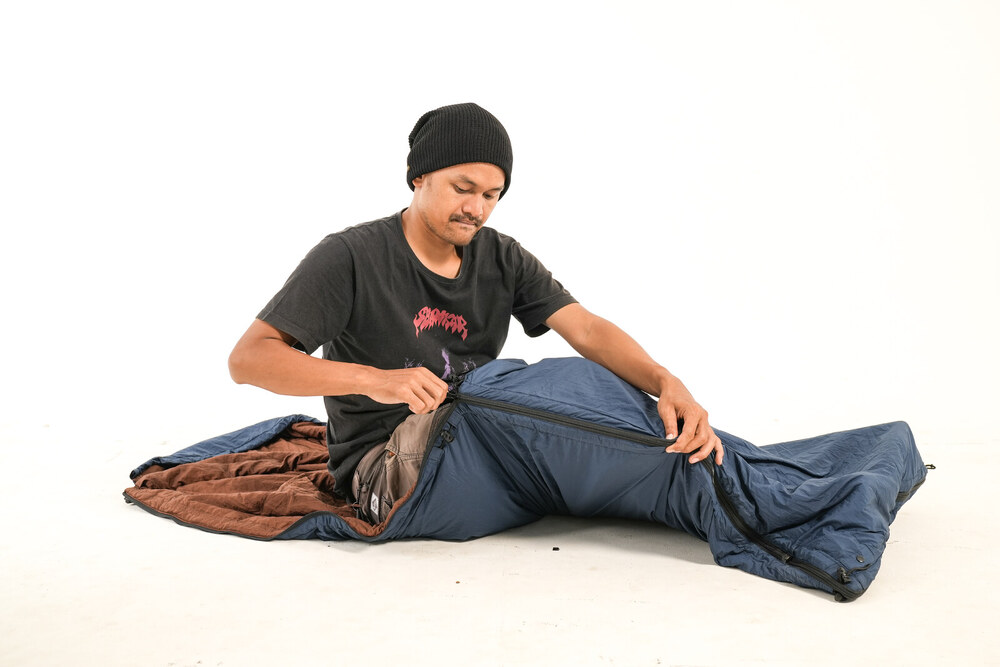 • Ez a szintetikus takaró használható hagyományos hálózsákként is, mivel van egy kapucni része és összecipzározható. Lásd a képeken.