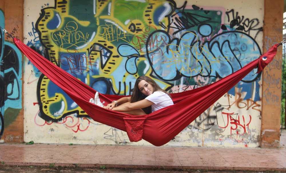 Az eredeti ejtőernyőselyem függőágy.