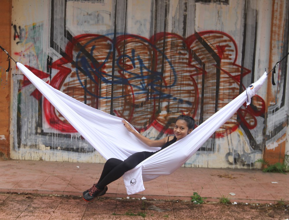Az eredeti ejtőernyőselyem függőágy.