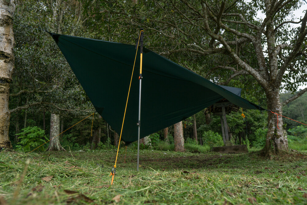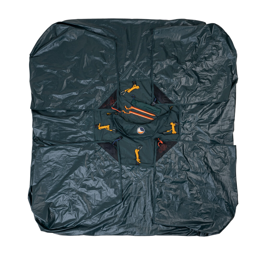 Könnyű és tartós ripstop, vízálló Nylon anyagból készült, és a tervezésekor a praktikusságra is törekedtek: a gyors kioldó csatokat a Moontarp négy sarkában lévő zsebek egyikébe csomagolhatod. Többféle cövekkel és kötéllel is kompatibilis, így jól használható a felszerelésed már meglévő darabjaival.