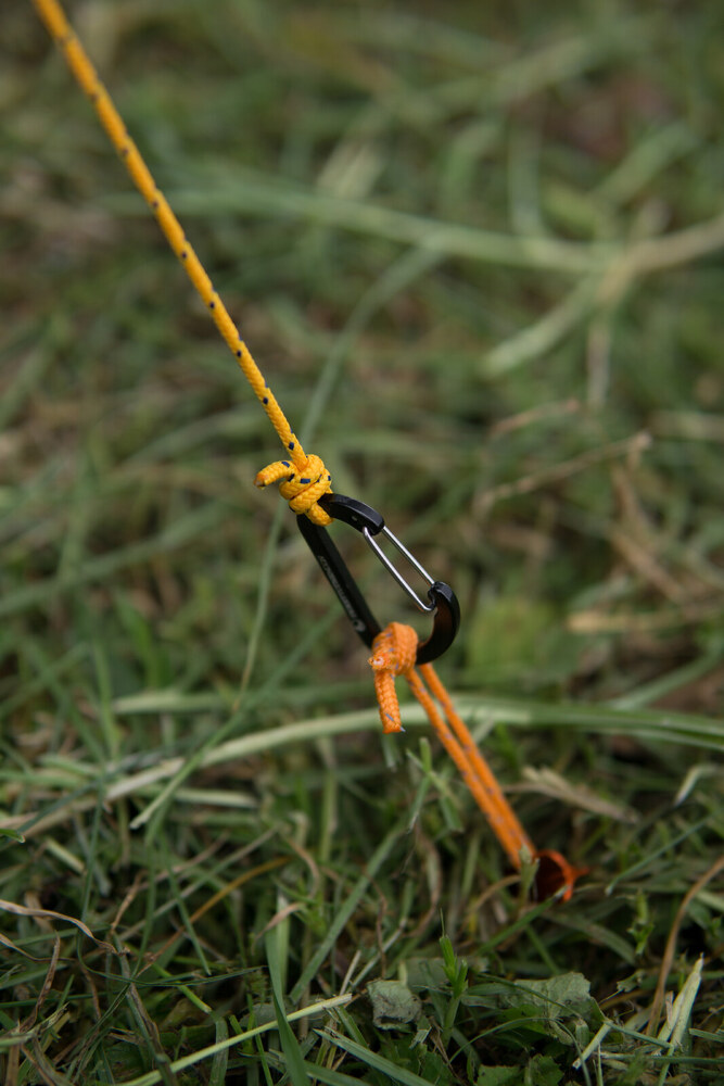 3. A Moontarp sarkait cövekeld le a földbe, vagy rögzítsd őket a közelben található nehezékekkel (kő, másik fa, egyéb tereptárgy)